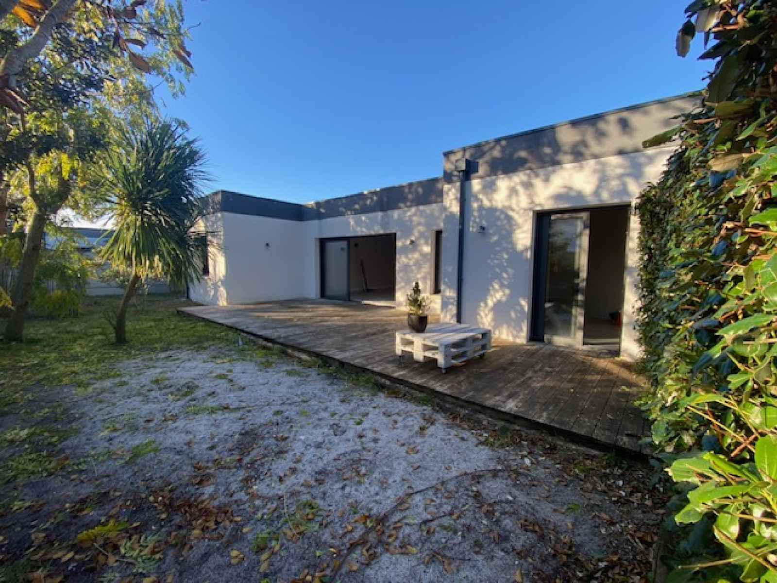 Le salon donne sur une très jolie terrasse en bois plein sud. Villa très lumineuse et sans vis à vis.