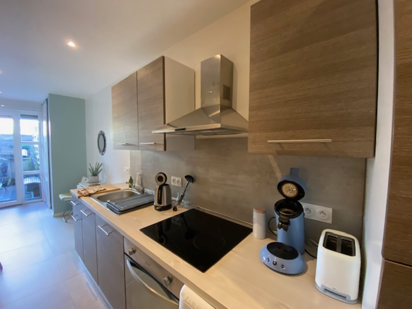 Un grand studion attenant et indépendant comprenant salon avec cuisine équipée, petite chambre séparée, salle d'eau avec toilettes - terrasse privative au studio;