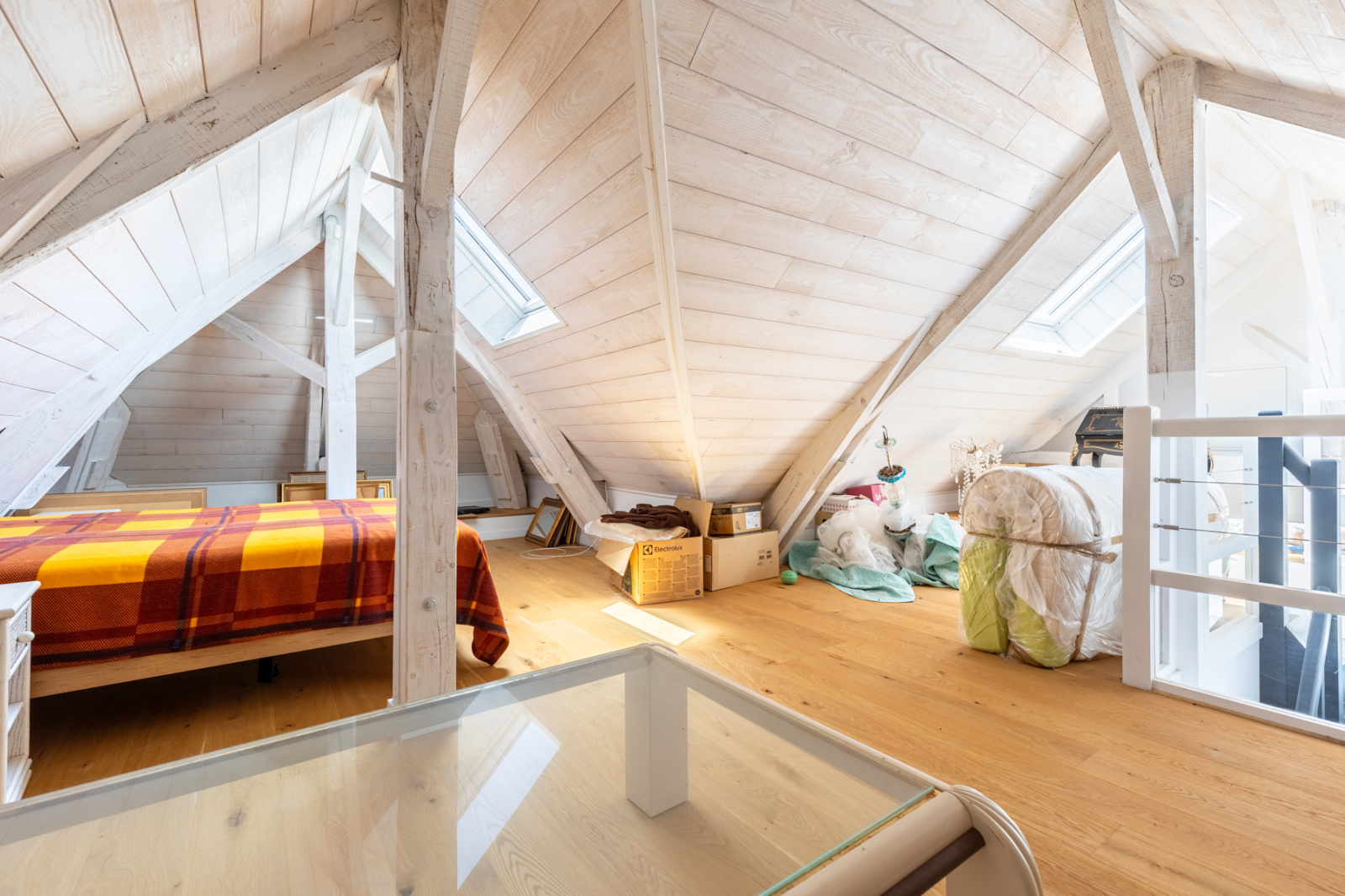 dressing, combles aménagés en dortoir avec une très belle charpente apparente ajoutant charme et caractère à l'espace.